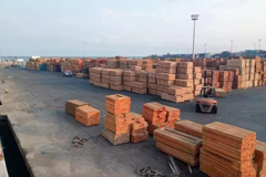 當?shù)貢r間7月8日下午,加蓬奧文多港。加蓬SGS出口這些來自加蓬的板材被裝上中遠海運特運大青霞輪,在奧文多當?shù)?0多位板材客戶和經(jīng)銷商的矚目下,踏上了前往中國的旅途。