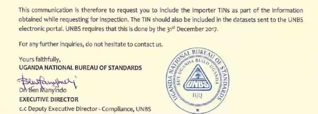 烏干達(dá)UNBS要求增加TIN號碼和啟用CoC電子證書