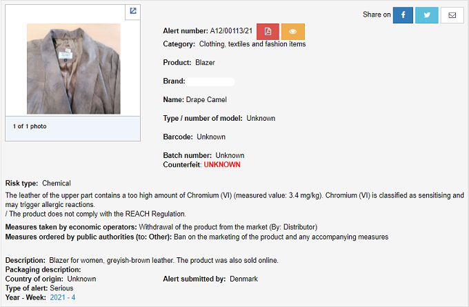 2021新年伊始,歐盟非食品類危險產(chǎn)品快速預警系統(tǒng)(RAPEX)就公布了4起由于六價鉻超標導致的召回,均為服裝產(chǎn)品。