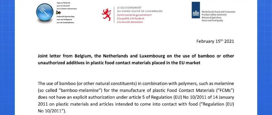 2021年2月15日,比荷盧經(jīng)濟聯(lián)盟發(fā)布聯(lián)合函,要求從歐盟市場撤出含竹纖維三聚氰胺-甲醛塑料產(chǎn)品。加上此次歐盟采取的強制計劃,我國作為世界竹纖維餐具生產(chǎn)和消費第一大國,勢必對相關(guān)出口企業(yè)產(chǎn)生重大影響,相關(guān)企業(yè)需留意暫停相關(guān)出口歐盟計劃,以免遭遇退市、召回等風險。若想今后進入歐盟市場,須待通過歐盟新品種申報后,才能合規(guī)使用。