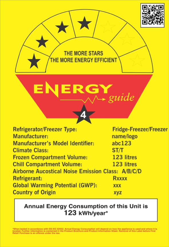 在新法規(guī)中加納要求電器制造商和進口商必須持有必要的技術(shù)資料,例如:說明書、符合能效標(biāo)準(zhǔn)的檢測報告、技術(shù)信息表等提交能效注冊,在獲得加納委員會的授權(quán)后方能進入加納市場。當(dāng)制造商或進口商完成能效注冊后將獲得加納授予的唯一產(chǎn)品識別碼,該識別碼將直接體現(xiàn)在能效標(biāo)簽上。注冊后的能效標(biāo)簽示例如下: