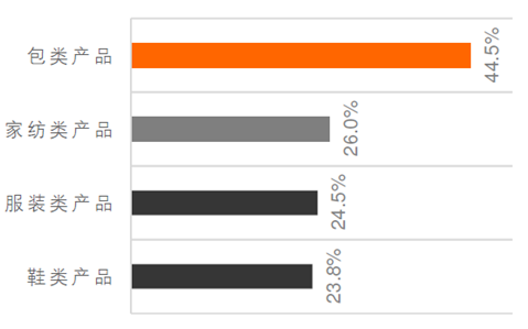 在四大類(lèi)產(chǎn)品中.包類(lèi)產(chǎn)品的不合格率最高.為44.5%