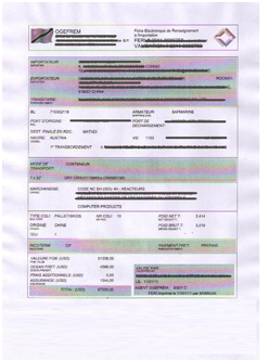 第三步:待貨物承運后,貴司需填寫申請表格并連同提單副本商業(yè)發(fā)票一起電郵或傳真給我司,貴司必須仔細(xì)查閱并核準(zhǔn)。待貴司核準(zhǔn)FERI草本后,我司方將此FERI發(fā)給當(dāng)局批復(fù)。FERI一旦批復(fù)后不能作出任何修改。